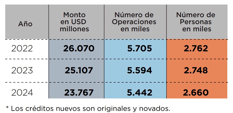 Datos históricos muestran que a cierre del 2024 se notó una reducción tanto el monto total del crédito concedido como el número de personas beneficiadas: