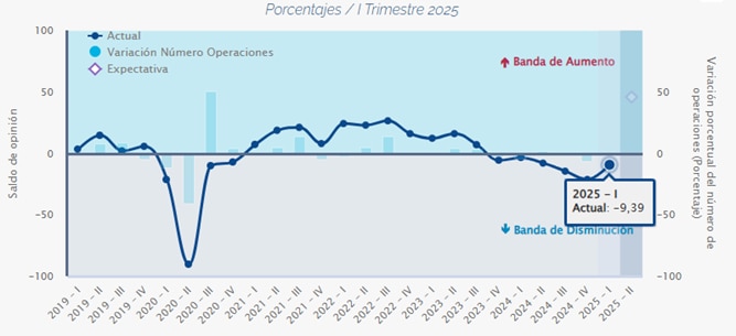 Las entidades financieras registraron una caída del 9,39% en las nuevas solicitudes de crédito. No obstante, para el segundo trimestre de 2025, anticipan un incremento del 45,72%, según se muestra en la siguiente Figura: